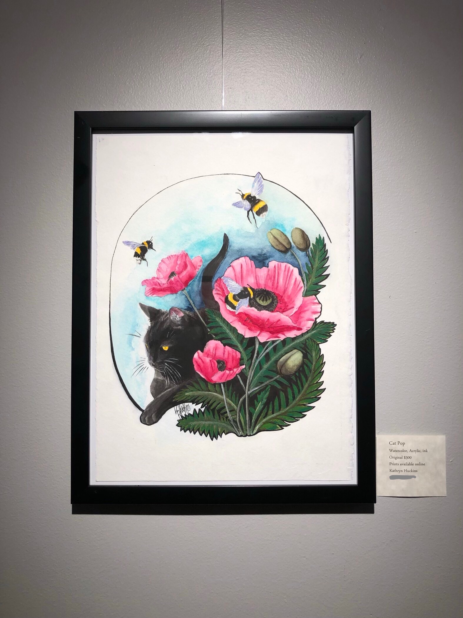 Cat Poppies Framed